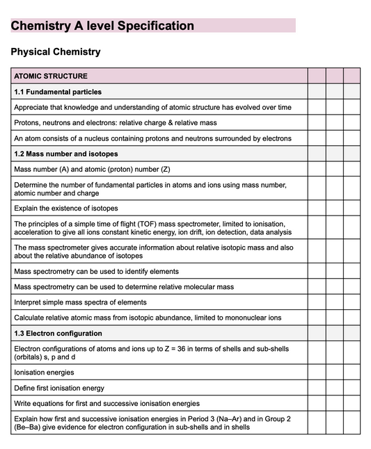 AQA A-LEVEL CHEMISTRY - SPECIFICATION BREAKDOWN